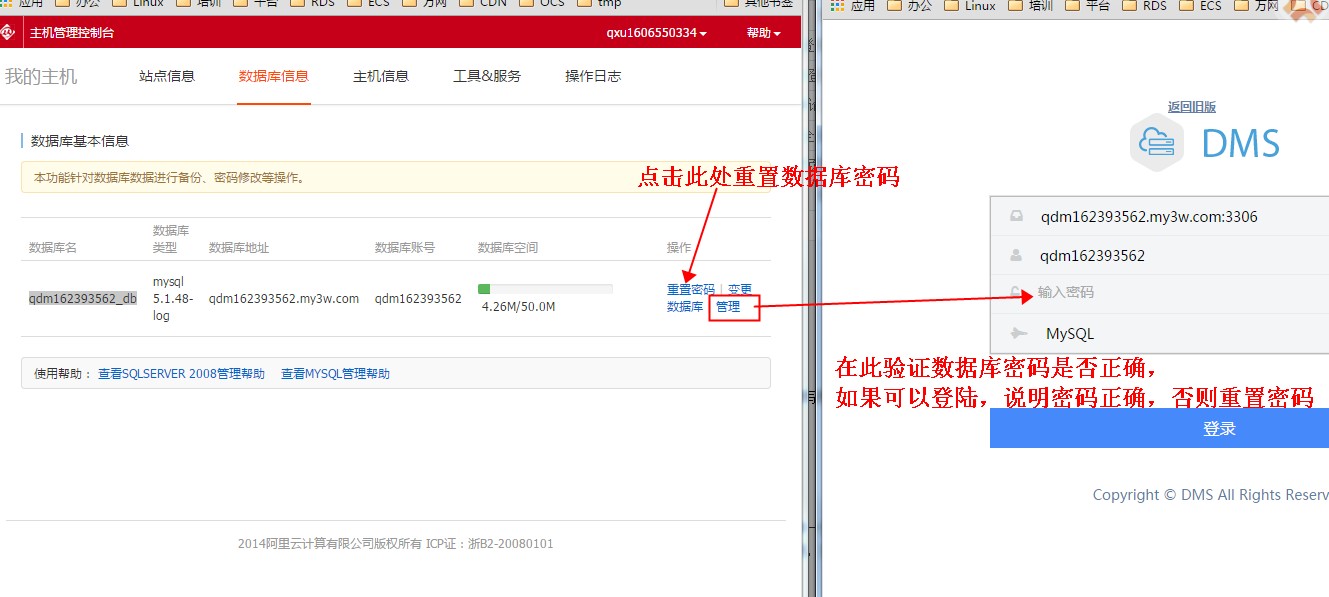 6. 请注意数据库的配置方法。数据库的连接地址不是localhost,而是 主机管理控制台>数据库信息页面中的数据库信息。